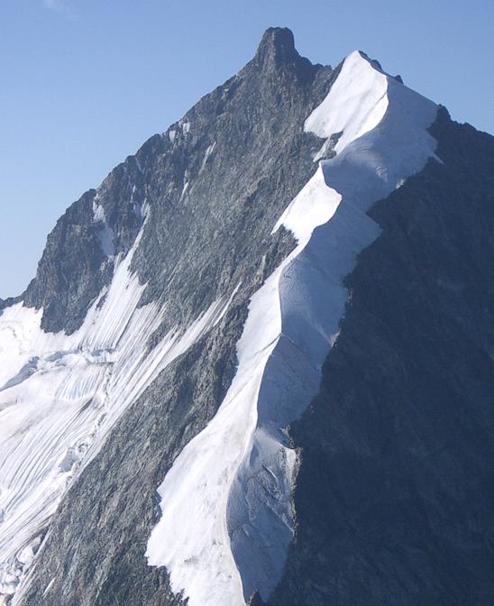 mit breiter Firnkuppe sichtbar. Rechts anschliessend der Piz Tschierva